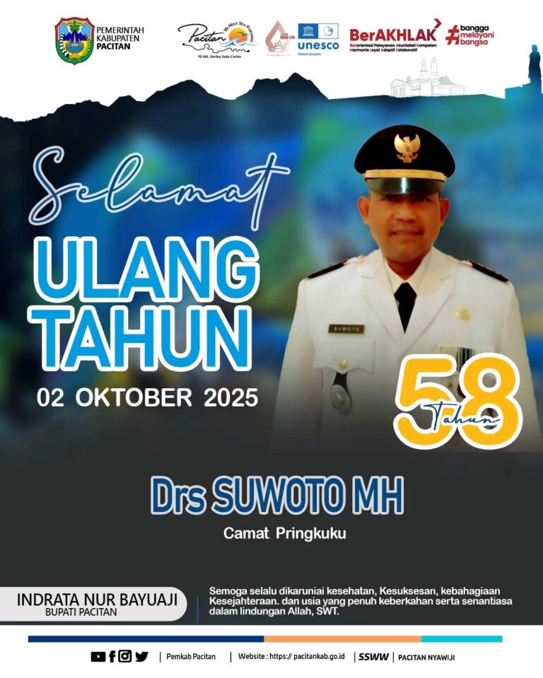 “Semoga panjang umur Sukses selalu serta selalu menjadi panutan”, ucapan tersebut diberikan kepada Bapak Camat Pringkuku, Drs. SUWOTO, MH pada saat perayaan Ulang Tahun ke 58 oleh seluruh Pegawai Kantor Kecamatan Pringkuku. Yang dirayakan pada hari ini tanggal 02 Oktober…