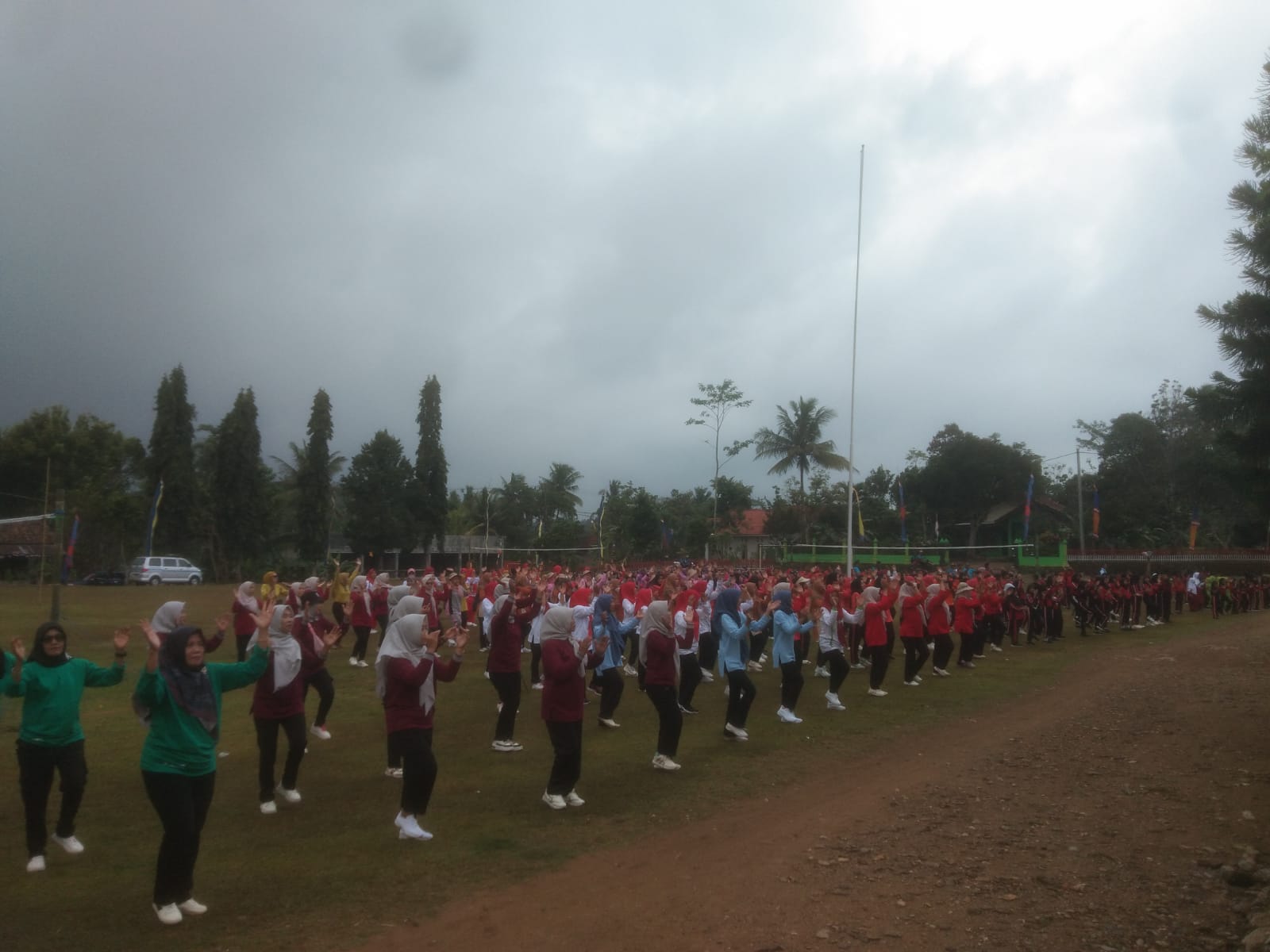 Antusias Peserta Senam masal dan perlombaan dalam Kegiatan Peringatan HUT Ke-80 Kec. Pringkuku, walaupun cuaca mendung. 12 Agustus 2025.